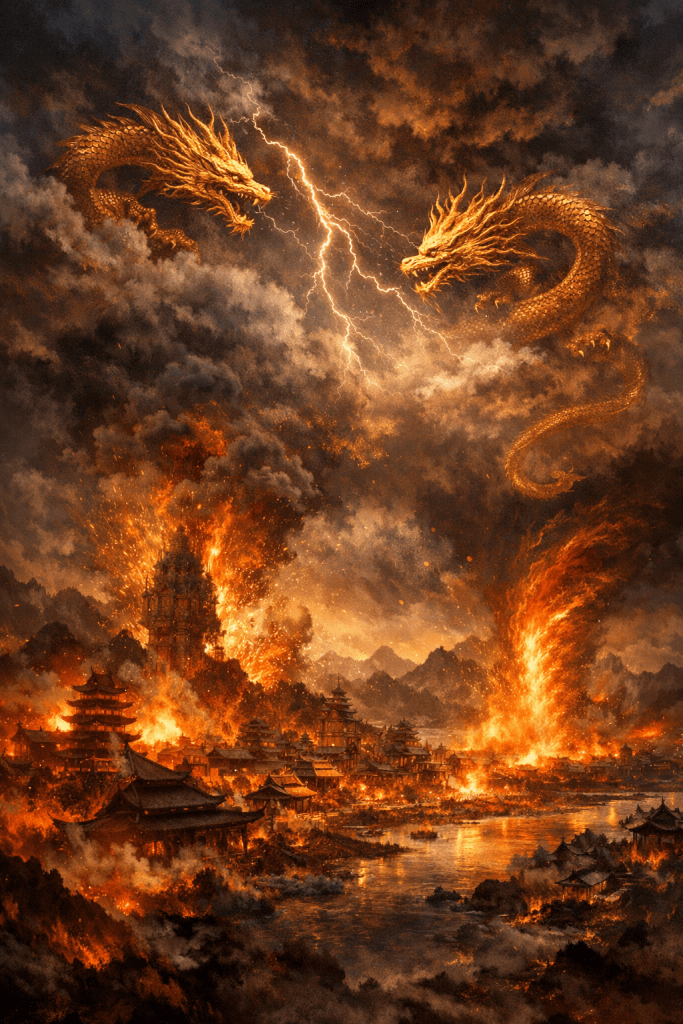 Hỡi những con dân của xứ Kỳ Lân, nơi những con rồng vàng ngự trị trung tâm, sấm sẽ nổ vang trên bầu trời và bên dưới là những khối lửa lớn, lửa là nguồn cơn của gió, chúng trở nên thịnh đại, trong cái lớn ẩn tàng sự đổ vỡ, trong cái suy tàn sẽ có mầm vượng phát, không có thứ gì đổi thay mà không trải qua thịnh đại và suy tàn.