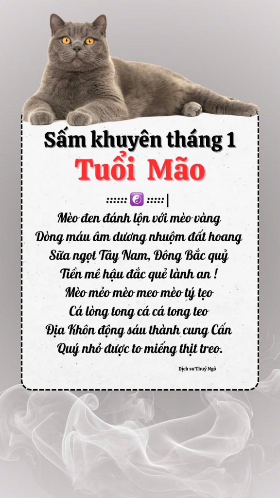 Sấm khuyên tuổi Mão tháng 1 2026 🐈⬛🐈⬛🐈⬛ Đăng bởidichsuthuyngo24 Tháng Hai, 202624 Tháng Hai, 2026Đăng trongSấm Chia sẻ: Chia sẻ trên X (Mở trong cửa sổ mới) X Chia sẻ lên Facebook (Mở trong cửa sổ mới) Facebook Thích Đang tải...