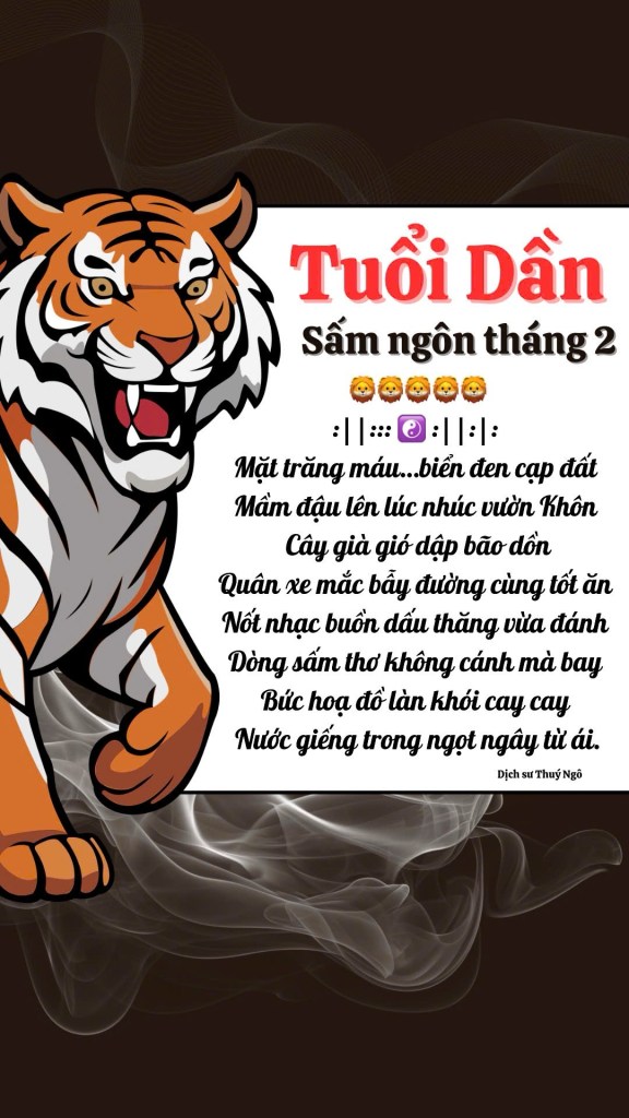 Sấm ngôn tuổi Dần tháng 2 2026 🦁🦁🦁 Đăng bởidichsuthuyngo4 Tháng Ba, 20264 Tháng Ba, 2026Đăng trongSấm Chia sẻ: Chia sẻ trên X (Mở trong cửa sổ mới) X Chia sẻ lên Facebook (Mở trong cửa sổ mới) Facebook Thích Đang tải...